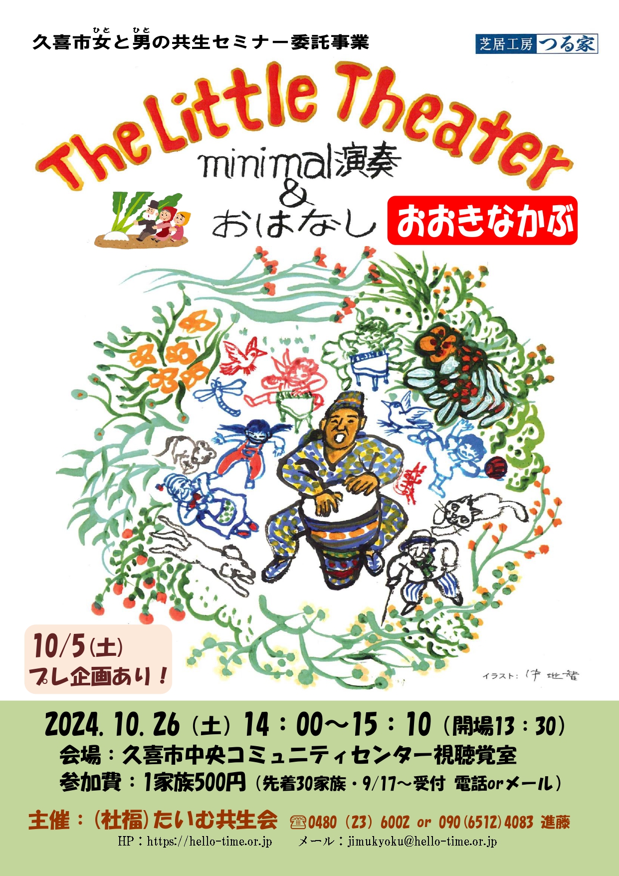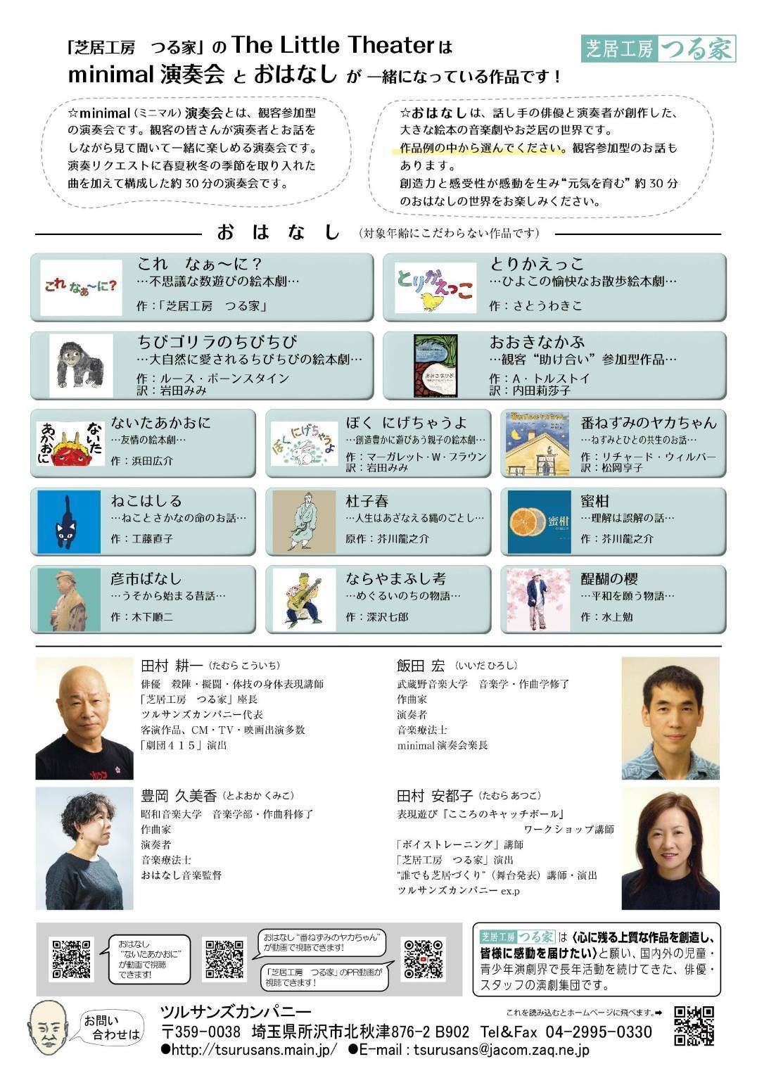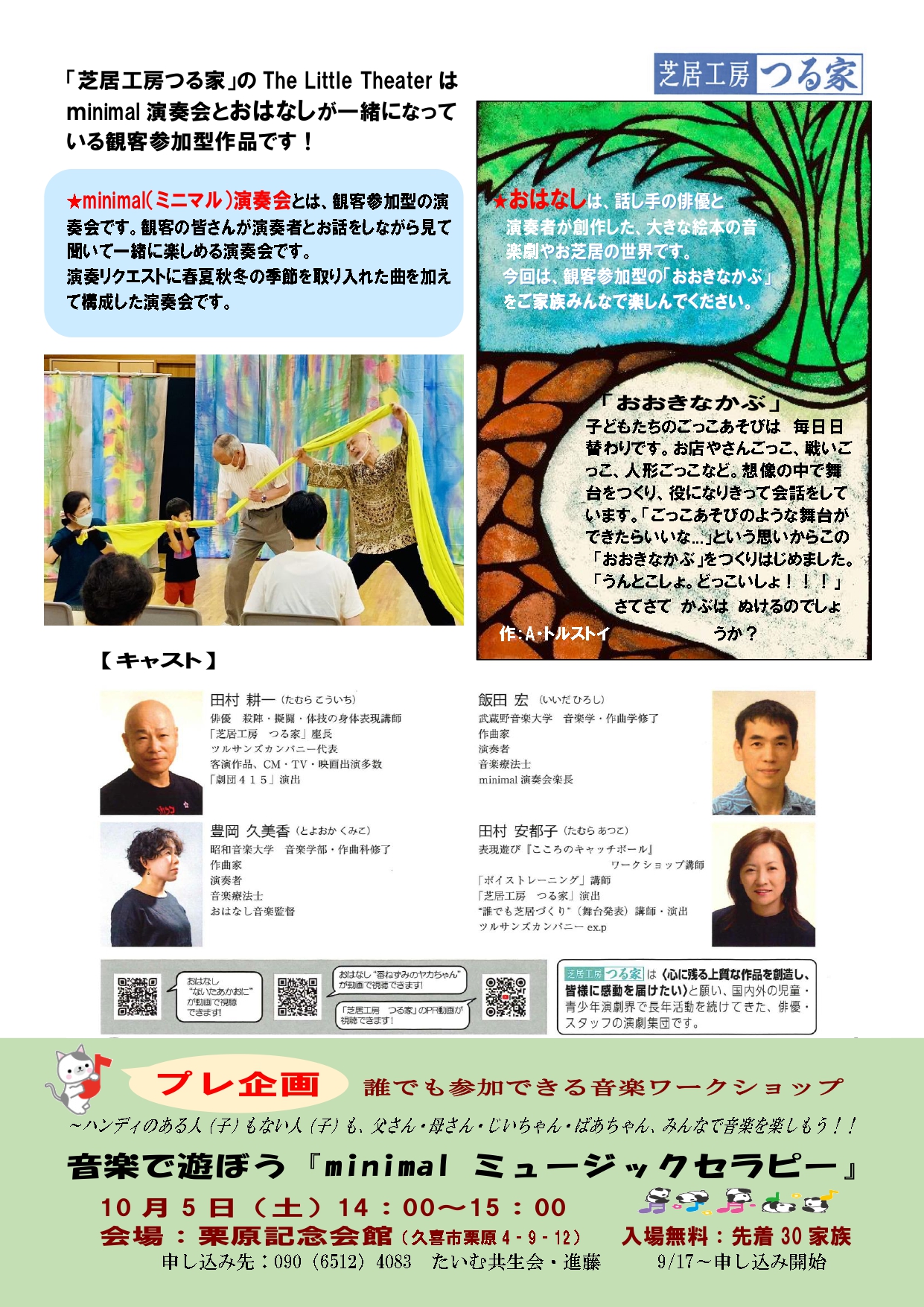 | 内容 | 公演「The Little Theater ~ minimal 演奏&おおきなかぶ(観客”助け合い”参加型作品)」 |
