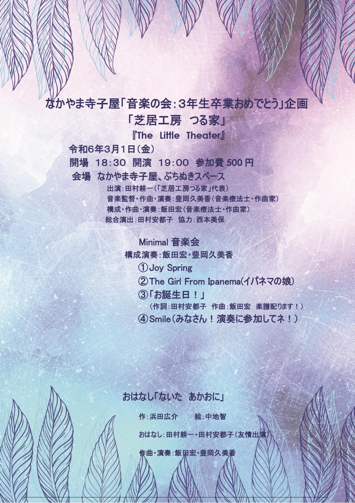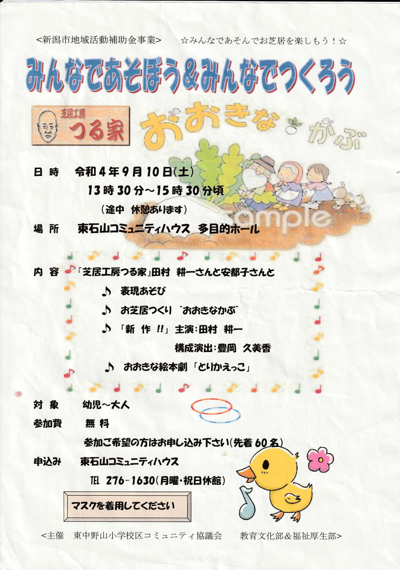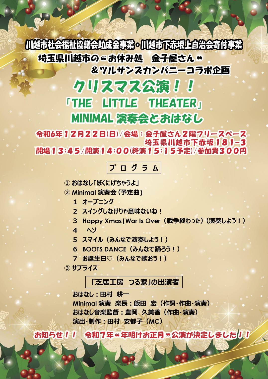 | 内容 | 公演「The Little Theater ~ minimal 演奏&おおきなかぶ(観客”助け合い”参加型作品)」 |